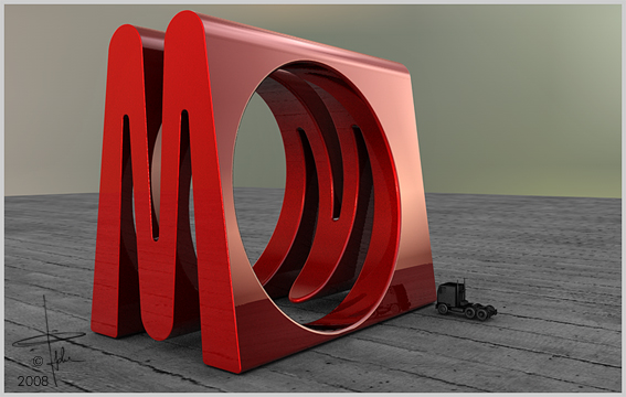 Artist impression van een monogram ring M/W, vervaardigd uit een massief blok.